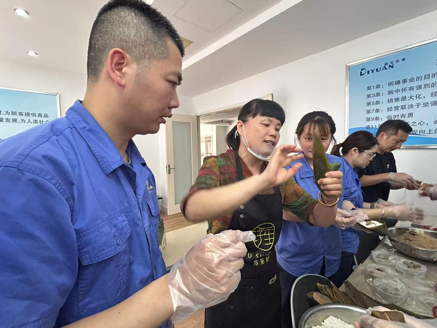 5月27日下午,包粽子活動(dòng)熱鬧開場。糯米、粽葉、紅棗、五花肉等食材香氣四溢,員工們在 “能手” 指導(dǎo)下踴躍嘗試。盡管手法生疏不一,但熱情高漲,現(xiàn)場歡聲笑語不斷。很快,形態(tài)各異的粽子擺滿桌面,既讓大家體驗(yàn)到傳統(tǒng)民俗樂趣,也增進(jìn)了同事情誼。?.jpg)