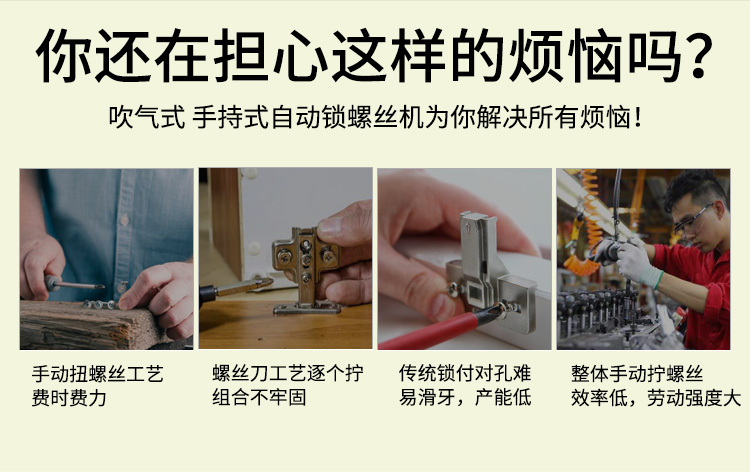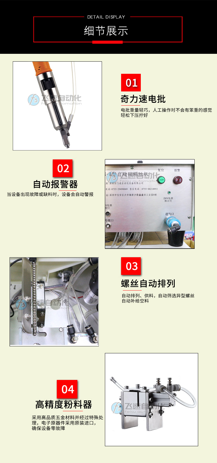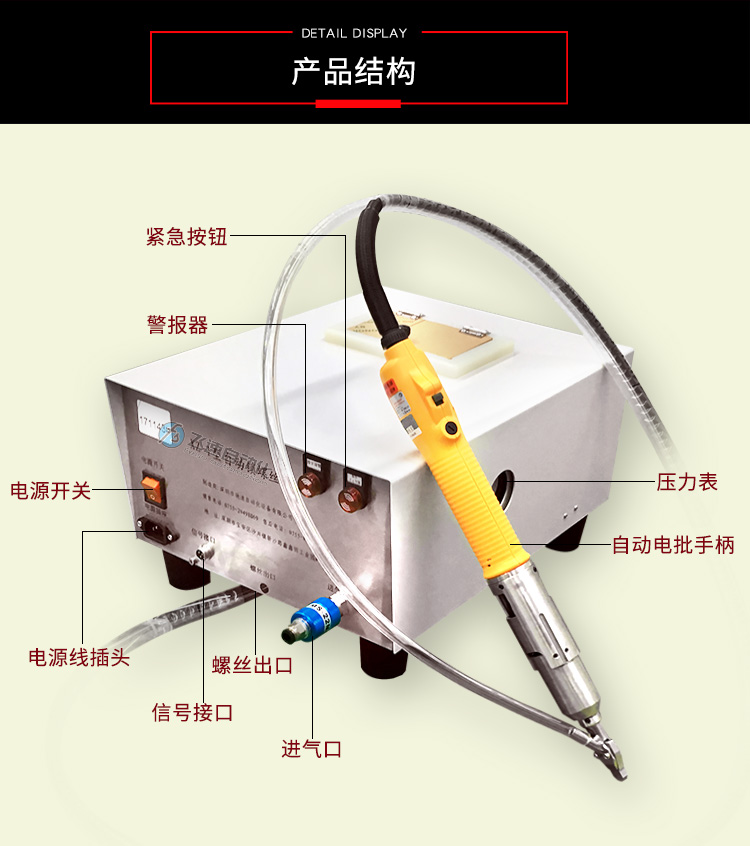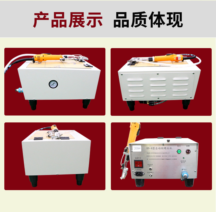 - 產(chǎn)品簡(jiǎn)介: 手持式鎖螺絲機(jī)優(yōu)點(diǎn) 省成本:?jiǎn)稳思纯筛咝Р僮?,省去一名人工?提效率:1分鐘可鎖60顆螺絲,效率提高1倍。 更輕松:左手無(wú)需取螺絲,可用于扶住產(chǎn)品。 更清潔:不再直接接觸螺絲,避免手部接觸造成二次污染而生銹。 形象佳:智能自動(dòng)化設(shè)備令企業(yè)生產(chǎn)景象一新,樹立企業(yè)高科技形象。 產(chǎn)品適用范圍 1.適用于各種類型的螺絲,螺絲總長(zhǎng)應(yīng)大于1.3倍螺帽直徑; 2.支持深孔螺絲鎖付,孔深小于40mm,M1-M6的螺絲; 3.適用于數(shù)碼、電子、小家電、電源開關(guān)、燈具、LED、玩具等產(chǎn)品。