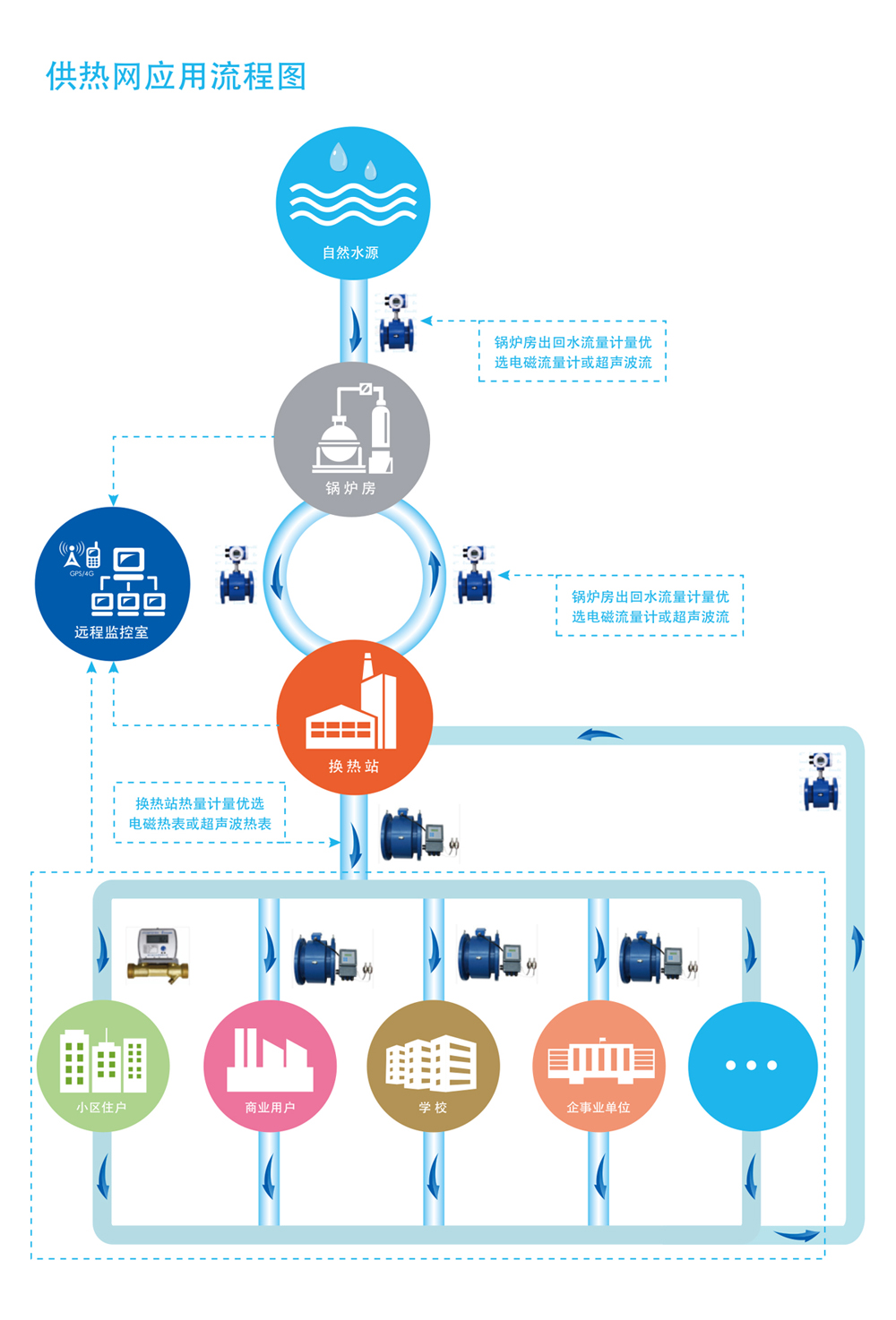 使用迪元電磁流量計(jì)和超聲流量計(jì)配合溫度傳感器,利用YYG無(wú)線數(shù)據(jù)采集器將流量和熱量數(shù)據(jù)上傳至上位機(jī)系統(tǒng),實(shí)時(shí)監(jiān)控各用戶的熱量使用、消耗情況,實(shí)現(xiàn)準(zhǔn)確的計(jì)量和結(jié)算,有效減少貿(mào)易糾紛,提高企業(yè)的經(jīng)濟(jì)效益。